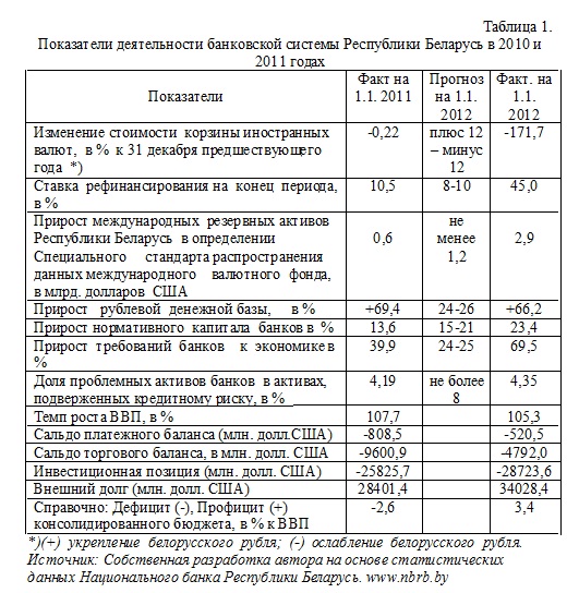 В 2011 году банковская система республики Беларусь пережила серьезный кризис, который едва не перешел в системный. Первый удар по банковскому сектору нанесла майская девальвация, которая обвалила белорусский рубль на 56% и серьезно шокировала кровеносно – сосудистую систему государства. Второй девальвационный удар по национальной валюте был нанесен в октябре 2011, обвал которого составил почти 52%. В итоге за год национальная валюта подешевела более чем в 2,4 раза, а инфляционный всплеск, выраженный в росте цен, составил 108,7%.