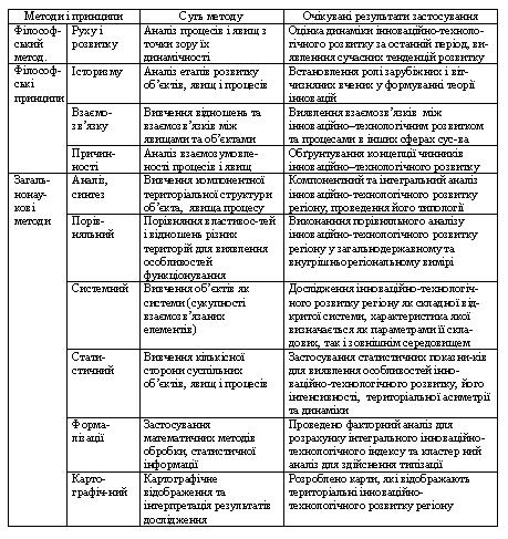 Таблиця 1 Методи дослідження інноваційно-технологічного розвитку регіону*