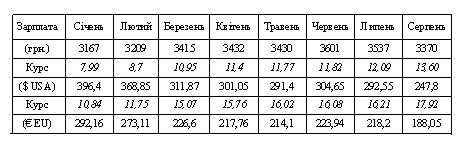 Таблиця 1. Динаміка середньомісячної заробітної плати в Україні у 2014 році