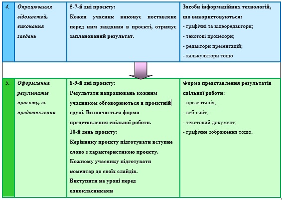 5.Оформлення результатів проєкту, їх представлення - результати проєкту підсумовуються та презентуються Форма представлення результатів спільної роботи: