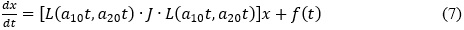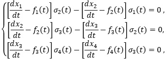 В системі (4) розв’язки перших двох рівнянь  підставимо в третє. Отримаємо нестаціонарну систему, яка складається з чотирьох рівнянь: